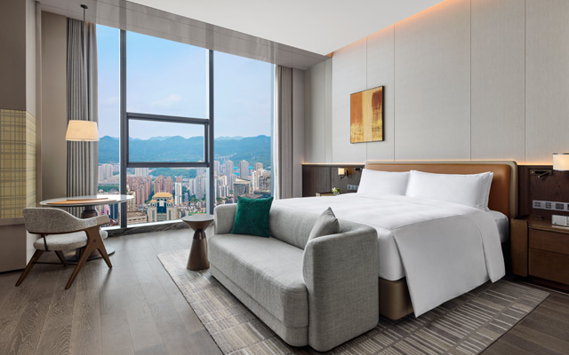 重庆康莱德酒店采用融合了当地自然和文化的东方浮城概念,拥有 275 间客房,可欣赏山景。