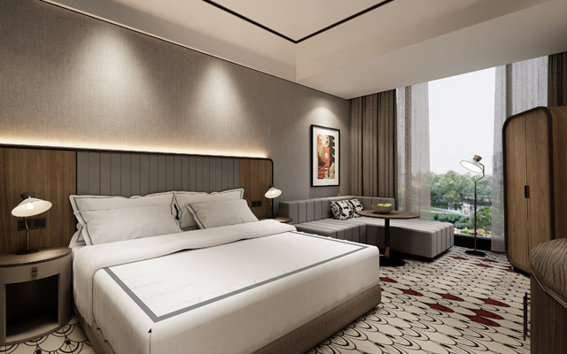 酒店设有主餐厅、酒廊以及将于今年晚些时候开业的屋顶餐厅和酒吧,设施包括屋顶无边泳池、儿童俱乐部、九间会议室和大宴会厅。