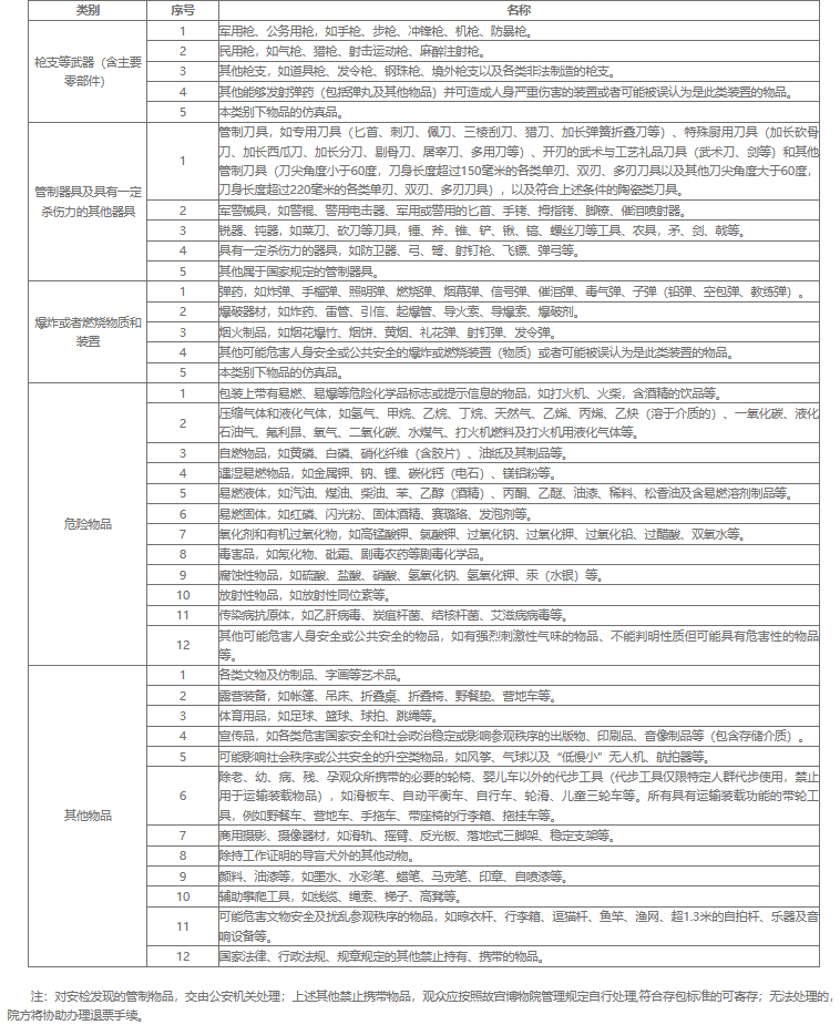 1、为保证古建、文物和观众的安全,建立良好的参观秩序,入院前请自觉接受安全检查,禁止携带物品详见《故宫博物院禁止携带物品目录》。安检发现的管制物品,将交由公安机关处理。目录中其他禁止携带物品,观众应按照故宫博物院管理规定自行处理,符合存包标准的可寄存。无法处理的,院方将协助办理退票手续。