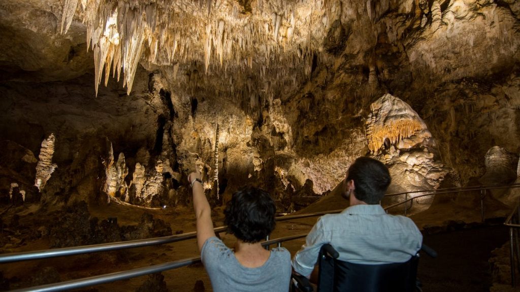 探索卡尔斯巴德洞穴可能需要短短 45 分钟到两个半小时以上,具体取决于游客是从洞穴的自然入口沿着陡峭的小路走下去,还是乘电梯到相对平坦的大房间。